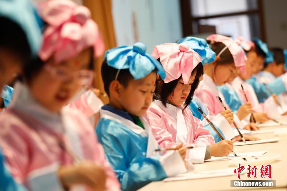 随着“唐宋诗词热”、“国学热”等现象的出现,优秀传统文化与当代教育再次“融”为一体。2月26日,上海市天山第二小学为在校的一年级学童举行“开笔礼”,为儿童启蒙教育“破蒙”。
