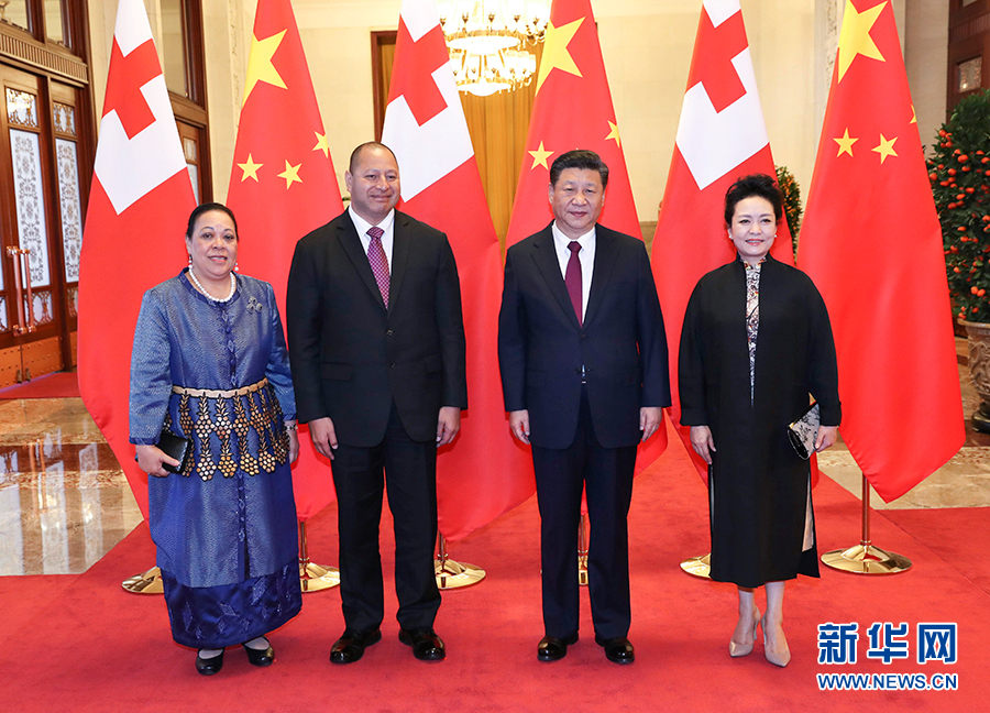 3月1日,国家主席习近平在北京人民大会堂同汤加国王图普六世举行会谈。这是习近平和夫人彭丽媛同图普六世国王和娜娜茜帕乌王后合影。新华社记者庞兴雷摄