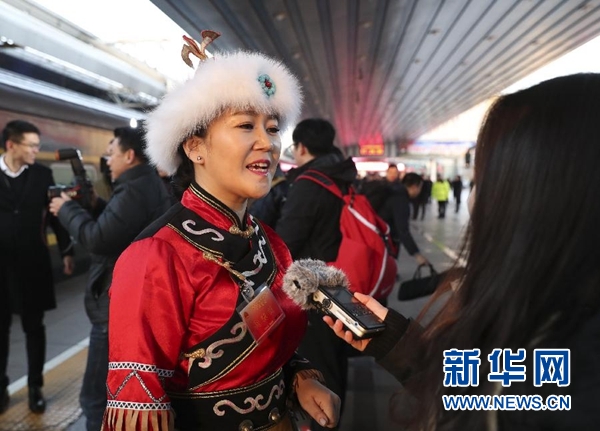 新华社快讯:2日7时20分左右,来自黑龙江省的全国人大代表乘坐Z16次列车抵达北京站。这是首批抵京参加十三届全国人大一次会议的京外代表。