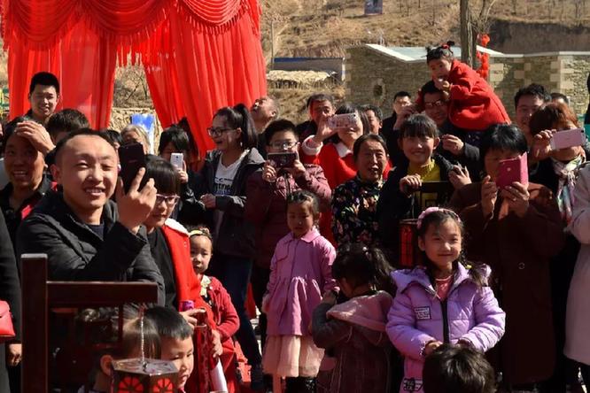 2月23日,在山西省永和县奇奇里村,村里的老老少少在观看冯文忠的婚礼仪式。新华社记者 曹阳 摄