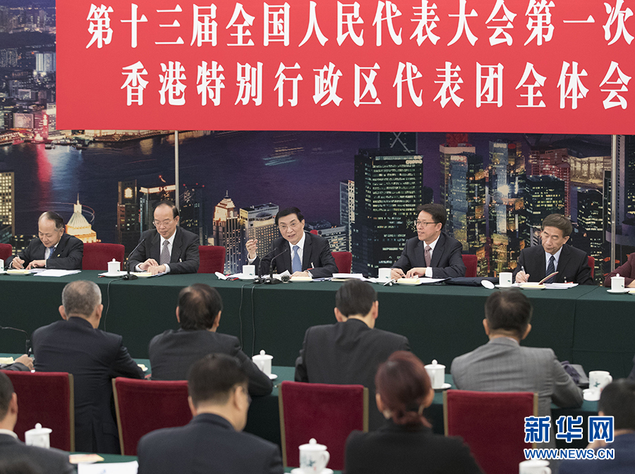 王沪宁分别参加了香港代表团、澳门代表团审议。王沪宁在与香港、澳门地区全国人大代表亲切交流时表示,中共十八大以来,在以习近平同志为核心的中共中央领导下,国家发展取得历史性成就,“一国两制”实践取得新的进展。要落实中共十九大对港澳工作重大部署,认真贯彻落实习近平总书记关于做好港澳工作的重要指示精神,全面准确贯彻“一国两制”方针,严格按照宪法和基本法办事,支持特别行政区政府和行政长官依法施政、积极作为,支持港澳融入国家发展大局,增强港澳同胞的国家意识和爱国精神,更好维护港澳繁荣稳定。港澳地区全国人大代表要增强大局意识、责任意识,发挥好作为爱国爱港、爱国爱澳中坚力量的作用。