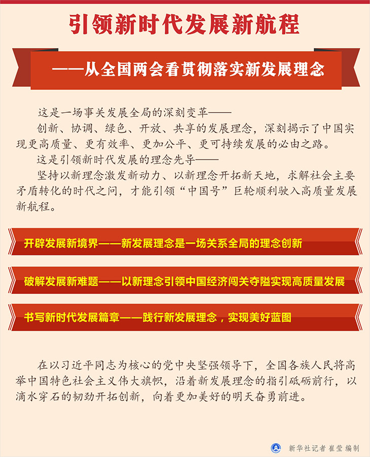 新华社北京3月8日电 题:引领新时代发展新航程——从全国两会看贯彻落实新发展理念