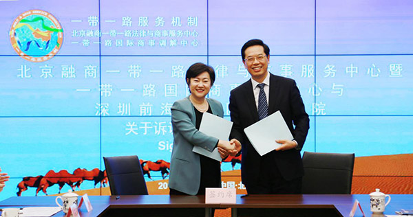 新华网北京3月9日电(记者 熊红祥)深圳前海合作区人民法院与北京融商一带一路法律与商事服务中心暨一带一路国际商事调解中心,8日在北京德恒律师事务所签署诉调对接合作协议。