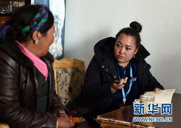索朗央吉在乡村工作已经16年了,基层工作尽管充满酸甜苦辣,但她始终不忘初心:“群众不脱贫,我就不离村!”