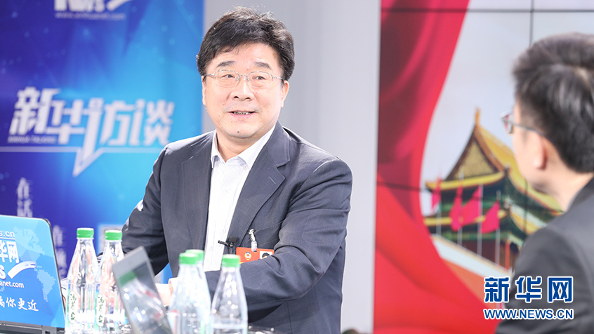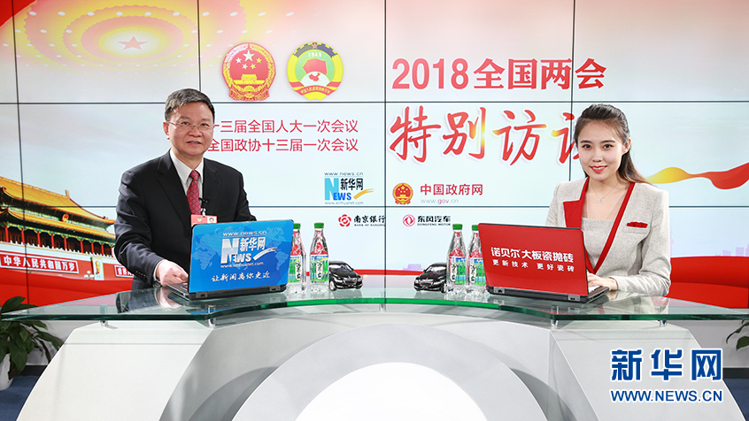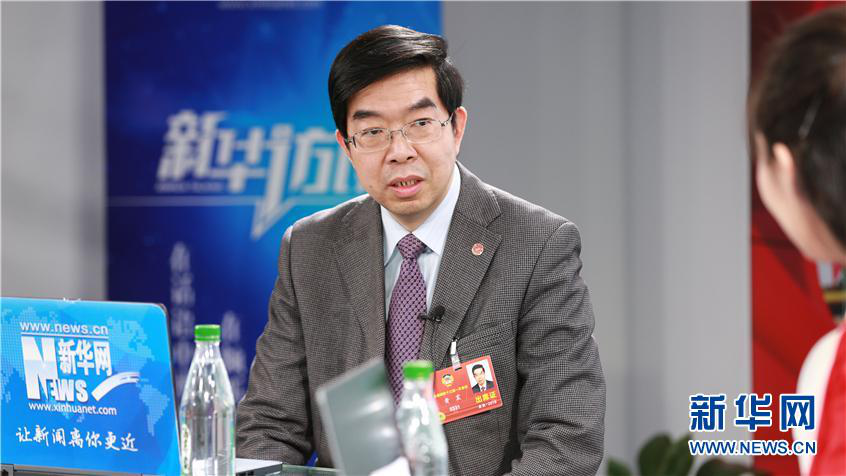 图为全国政协委员、民进中央副主席、上海市政协副主席、上海交通大学副校长黄震做客新华网2018全国两会特别访谈。新华网 杨锘摄