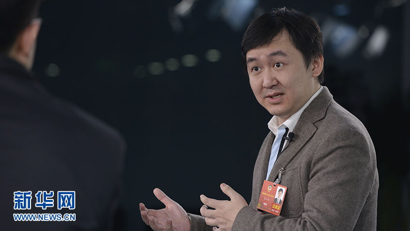 图为全国政协委员、搜狗CEO王小川做客新华网2018全国两会特别访谈。新华网 李相博摄
