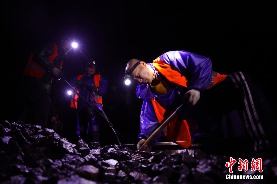 倒春寒的天气让江西各地“阴晴不定”。3月19日晚间,位于京九铁路江西南昌至九江区段,百余名铁路工人头顶着灯光在寒雨中进行更换枕木施工作业。文/汪翰 李利群 图/汪翰