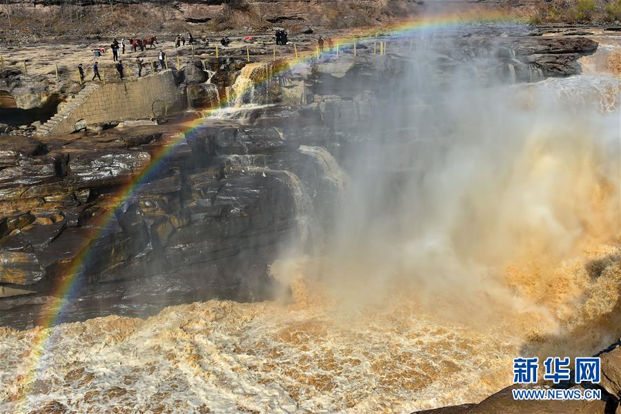 壶口迎来“桃花汛” 黄河两岸架彩虹