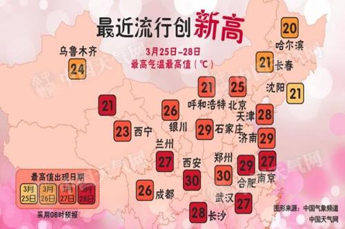 明天更是如此,从陕西、山西大部、京津冀大部地区一直到华南,很多地方的最高气温都会超过25℃,其中河北南部到河南北部最高气温会超过30℃。北京23-28日将连续6天最高气温在20℃以上,同样属于同期少见,有记录以来只在2015年3月26日-31日出现过1次。而且不仅是白天温暖,早晚气温上升的幅度也不小,北方多地本周仿佛提前坐上了“入春”的专列,多地气温连续创新高。