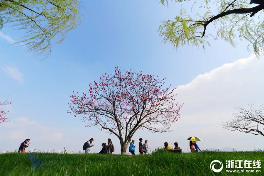 3月26日,雨后西湖再度晴归。西湖白堤,正是桃红柳绿时。(浙江在线拍友 里尔 摄)