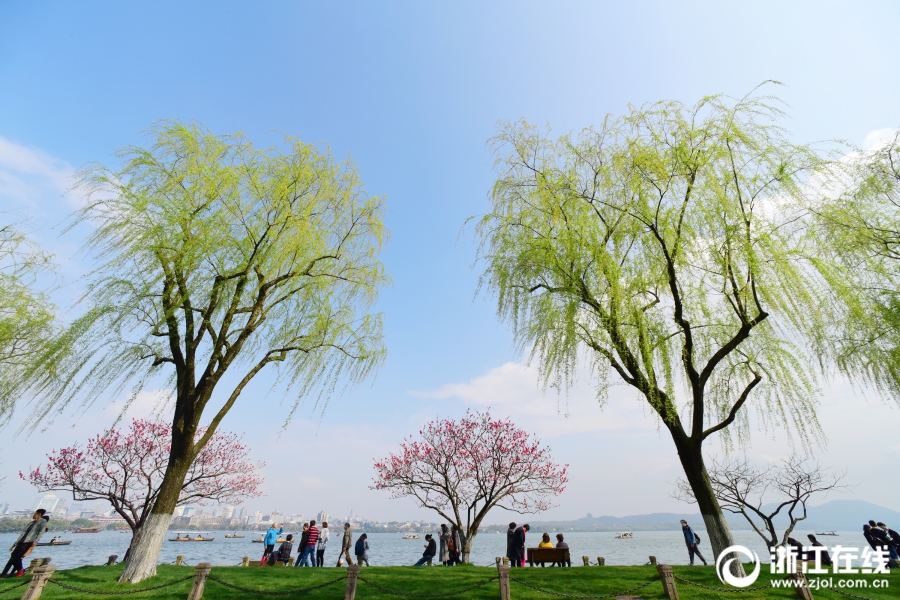 3月26日,雨后西湖再度晴归。西湖白堤,正是桃红柳绿时。(浙江在线拍友 里尔 摄)