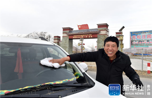 3月27日,克松村致富能手达瓦准备开车出行。新华社记者 觉果 摄