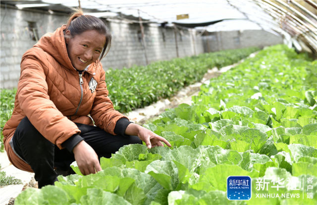 3月27日,克松村种菜能手白玛央宗在自己承包的温室里劳作。新华社记者 觉果 摄