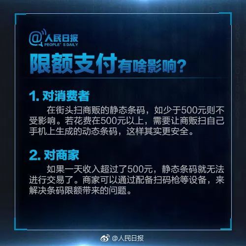 根据央行通知,4月1日起,微信、支付宝等应用扫码付款将限额,静态扫码每天最高500元。