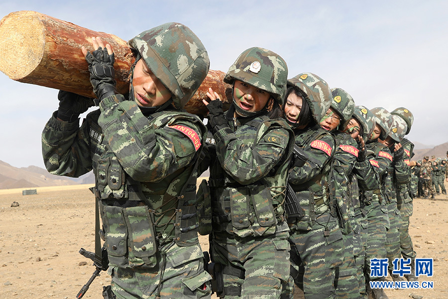 这是特战队员扛圆木进行极限体能训练。新华网发 余文彬 摄