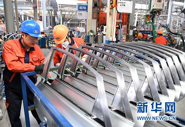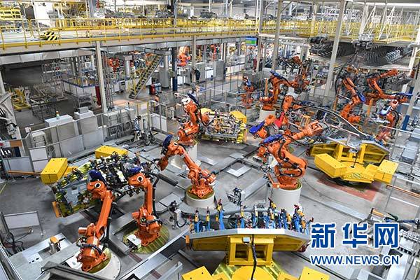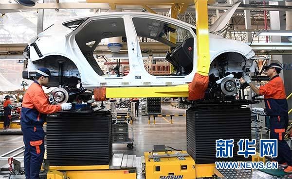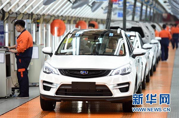 3月27日,工人们在浙江临海的吉利汽车生产车间工作。新华社记者 殷博古 摄