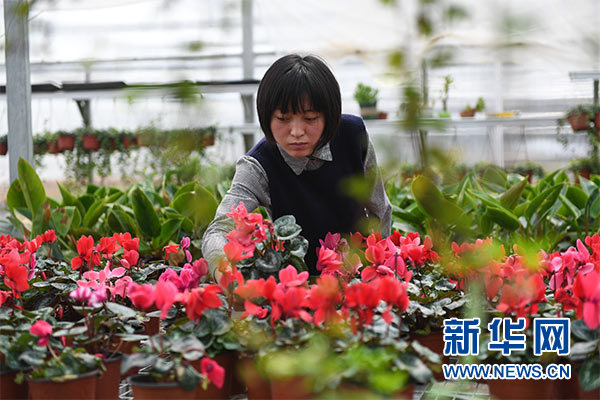 李敏在沭阳新河镇的沭阳沃彩园艺基地(4月1日摄)。新华社记者 季春鹏 摄