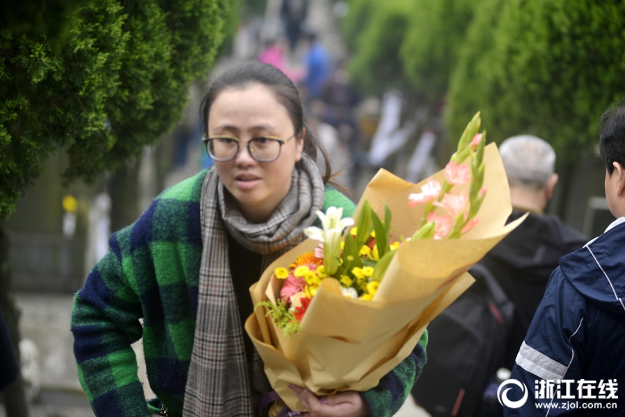 4月5日清明节上午,前往浙江省定舟山市定海区清陵扫墓人络绎不绝,不少扫墓人用鲜花祭祀,寄托哀思怀念逝去的亲人,倡导环保绿色的清明。(浙江在线拍友 胡社友 摄)