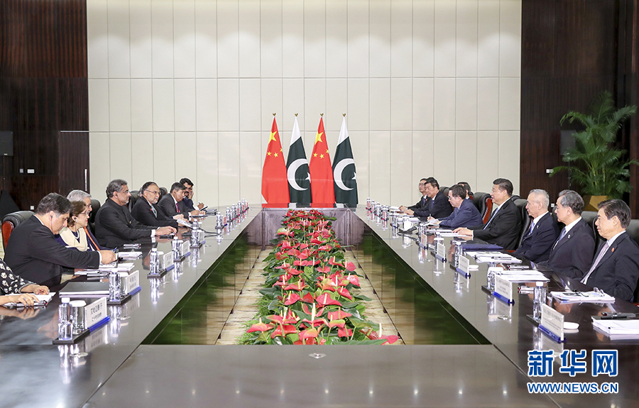 习近平指出,我2015年访问巴基斯坦以来,中巴全天候战略合作伙伴关系取得长足进展。当前,国际和地区形势正在发生深刻复杂变化。巩固中巴全天候友谊,深化中巴战略合作,具有更加重要和现实意义。中巴关系应当成为睦邻友好的典范、地区和平稳定的支柱、“一带一路”国际合作的标杆。中方愿同巴方一道,发挥高层交往对双边关系的重要引领作用,保持各领域密切交流,弘扬传统友好,继续相互支持,深化利益融合,推动中巴关系实现更高水平发展,打造更加紧密的中巴命运共同体。双方要继续稳步推进中巴经济走廊建设,规划和实施好瓜达尔港等基础设施、能源、产业园区等项目。