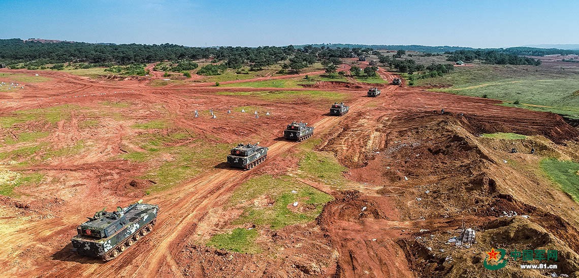 履带梯队依次前进。