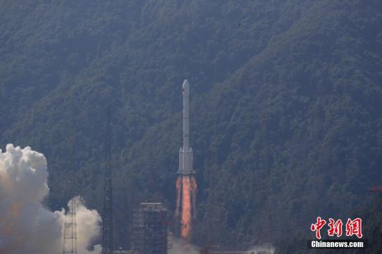 资料图:中国在西昌卫星发射中心用长征三号乙/远征一号运载火箭,以“一箭双星”方式成功发射第二十八、二十九颗北斗导航卫星。中新社记者 梁珂岩 摄
