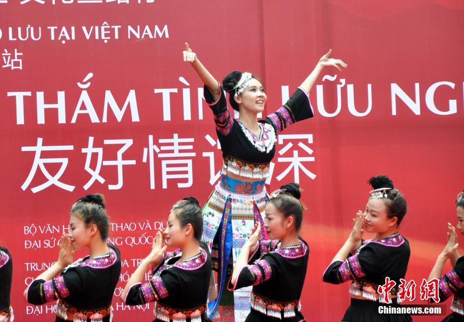 4月18日,2018年广西“‘三月三’文化丝路行”活动在越南河内文化大学举办大型民族歌舞展演。中越两国民众以歌会友、以舞传情,共同欢度“三月三”传统民族节日。“三月三”是壮族地区最为隆重的民族传统节日和歌圩日。除在广西及周边省市有分布外,在东南亚的许多国家也有壮族后裔。黄艳梅 摄