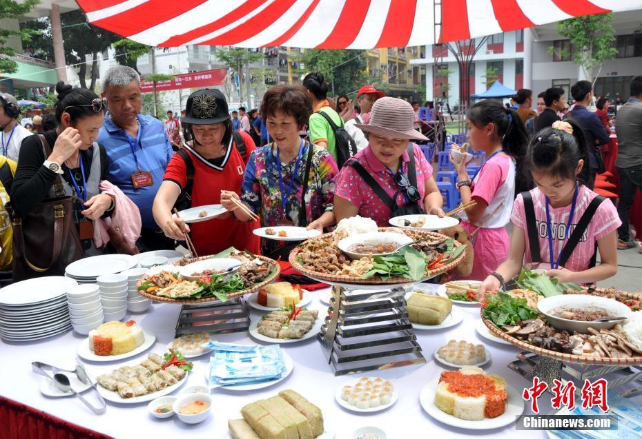 中越民间特色美食长桌宴吸引食客。黄艳梅 摄