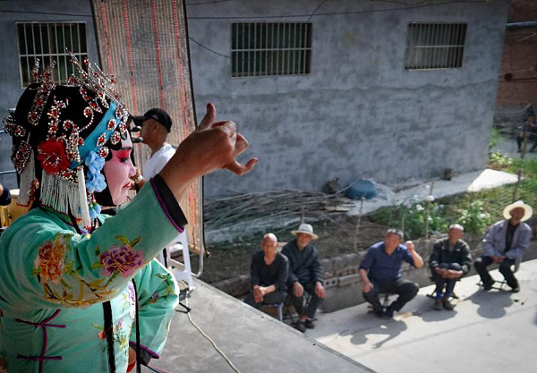 4月18日,焦作市博爱县豫剧团的演员根据双庙村群众的文化订单需求,为该村群众表演。近年来,河南省焦作市积极探索推行“百姓文化超市”惠民工程,立足百姓文化需求,运用“互联网+”理念,采用“超市化”供应、“菜单式”服务、“订单式”配送的模式,让群众根据意愿“淘”文化。