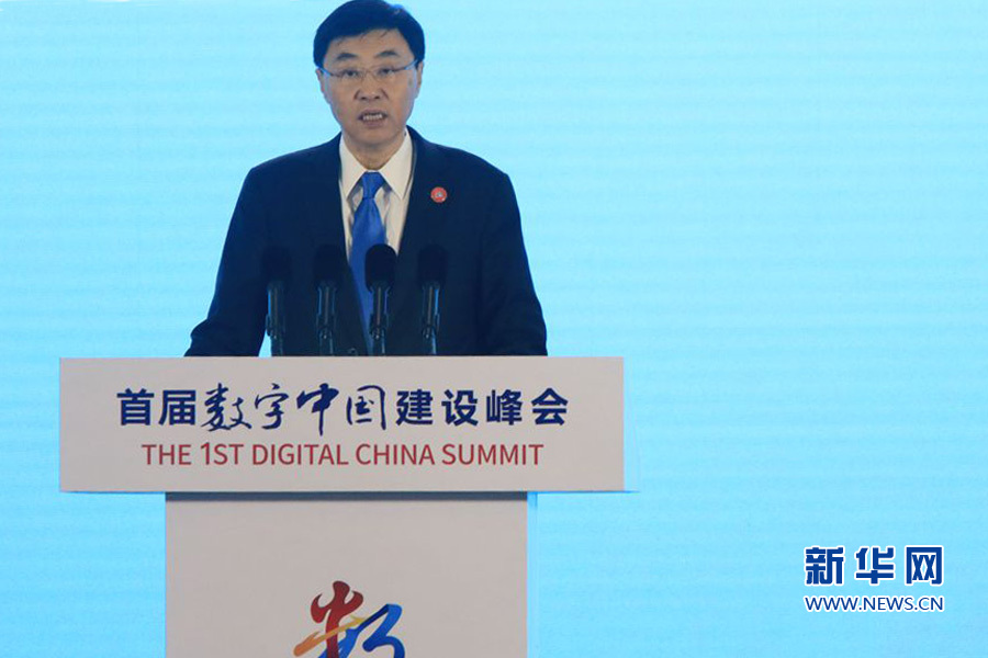 中国移动通信集团公司董事长尚冰发言。新华网 肖和勇摄