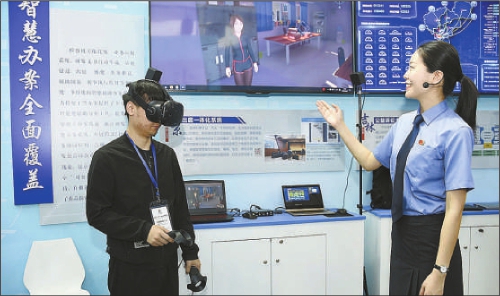 4月21日,首届数字中国建设成果展览会在福州举行开馆仪式。展会中,检察机关以“智启今朝,慧赢未来——全国检察机关智能化建设巡礼”为主题,集中展示近年来的智慧检务成果。 本报记者程丁 钟心宇摄