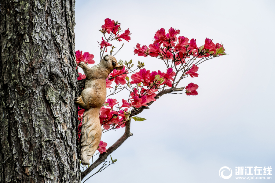 4月21日,全国森林旅游示范县、浙中杜鹃谷——磐安县盘峰乡高姥山核心区块的2000多亩各色杜鹃竞相争艳,满山遍野杜鹃姿态万千,花团锦簇,身临其中,宛如置身仙境。(浙江在线拍友 陈溢之 摄)