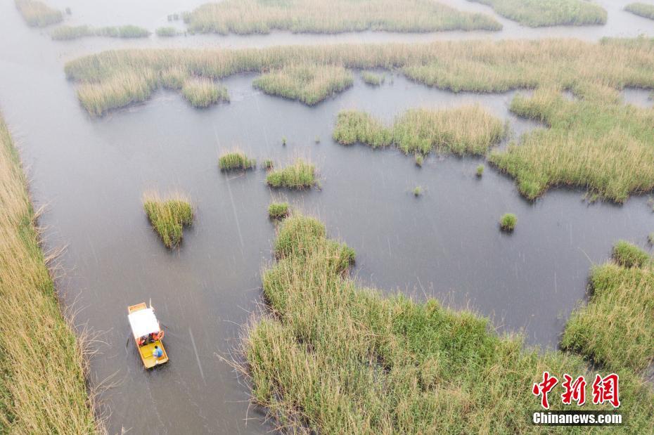 航拍江苏高邮湖 “芦苇迷宫”醉游人