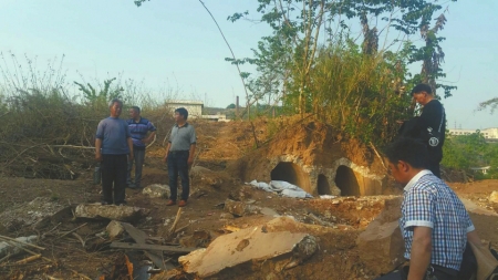 发现古墓 收藏爱好者在工地迁坟废墟中