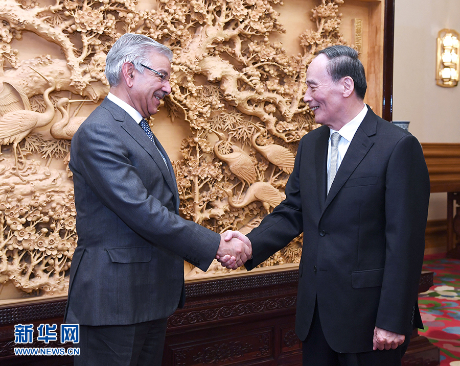 4月24日,国家副主席王岐山在北京中南海会见巴基斯坦外长阿西夫。新华社记者饶爱民摄