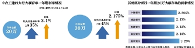 4月24日,新京报获悉,工、农、中、建有较基准利率上浮45%的大额存单,起存金额均为30万,期限一年,调整后利率为2.175%。