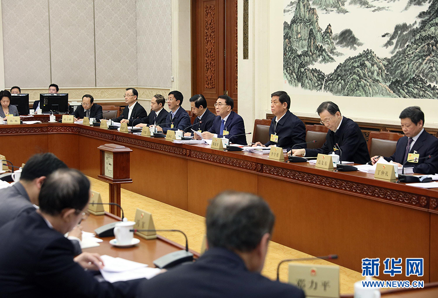 4月25日,十三届全国人大常委会第二次会议举行分组会议,审议人民陪审员法草案、英雄烈士保护法草案等。栗战书委员长参加审议。 新华社记者刘卫兵 摄