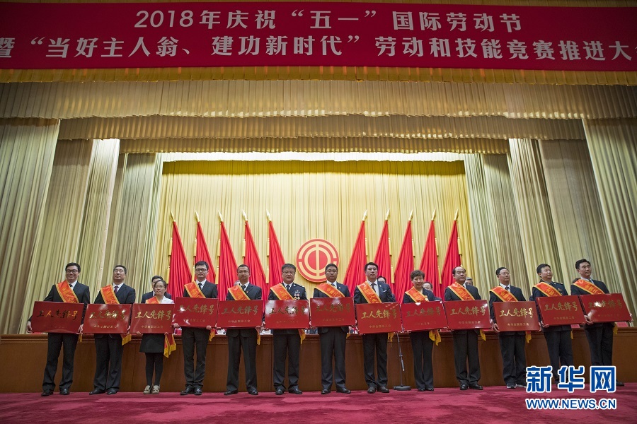 新华社北京4月28日电 2018年庆祝“五一”国际劳动节暨“当好主人翁、建功新时代”劳动和技能竞赛推进大会4月28日在北京人民大会堂举行。全国人大常委会副委员长、中华全国总工会主席王东明出席并讲话。