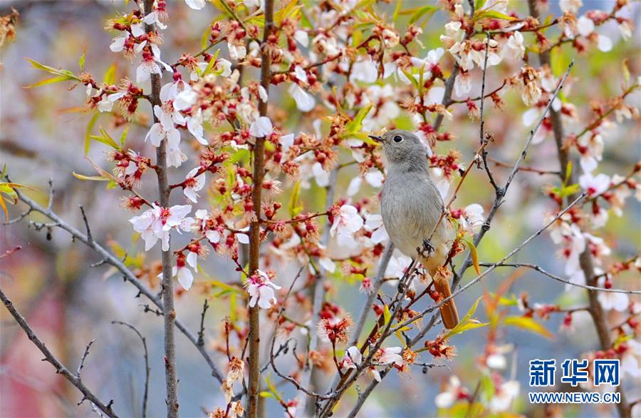 在西藏雅尼国家湿地公园旁桃树枝头的一只小鸟(4月27日摄)。春日里,西藏雅尼国家湿地公园生机盎然,十分怡人。西藏雅尼国家湿地公园位于西藏林芝市中南部的米林县和巴宜区境内的雅鲁藏布江与尼洋河交汇处,河面海拔2920米。新华社记者 张汝锋 摄