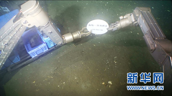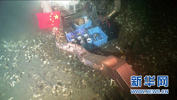 这是“海马”号遥控潜水器拍摄的海底联合工作过程。新华社发
