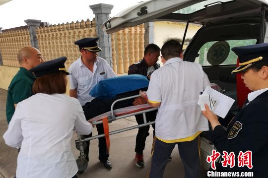 患病旅客被转移至救护车 雷祖胜 摄