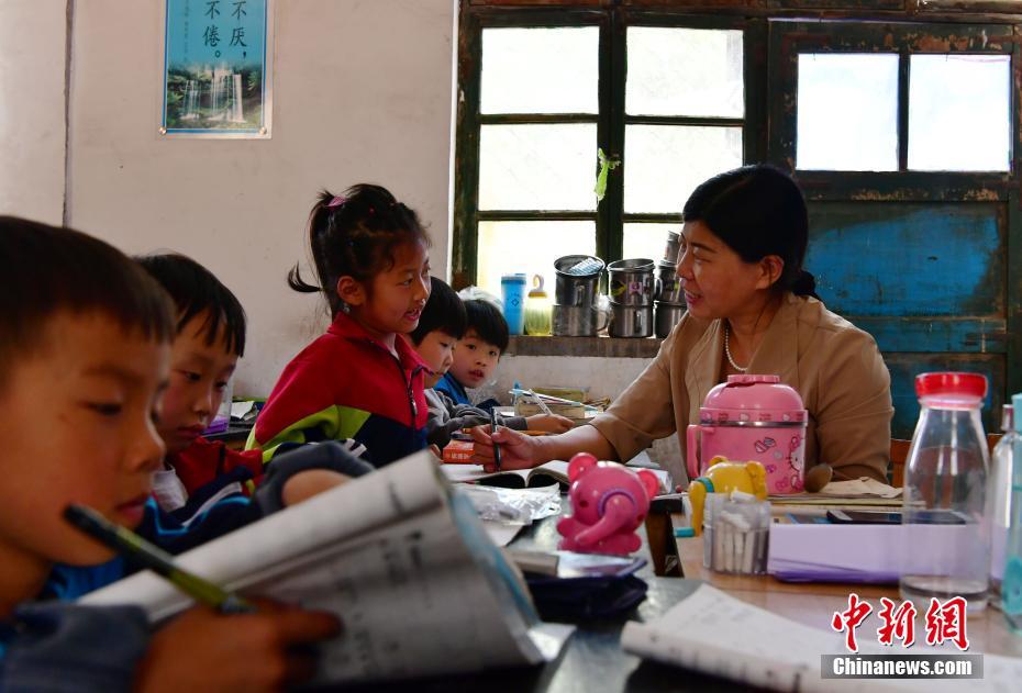 5月4日,河北邢台平乡县东庙小学教室,赵秀格正指导一名学生功课。中新社记者 翟羽佳 摄