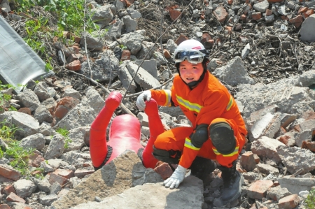 贾孝龙在抢险演练中。摄影 李强