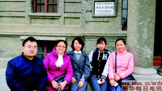 杨宗丽(左二)带着学生参观北大红楼。图片由受访者提供