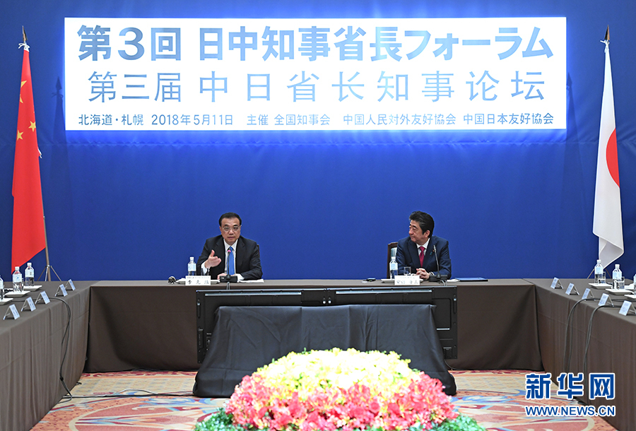 新华社日本札幌5月11日电(记者 谭晶晶 姜俏梅)当地时间5月11日上午,国务院总理李克强在北海道札幌下榻饭店出席中日省长知事论坛开幕式并致辞。日本首相安倍晋三出席。