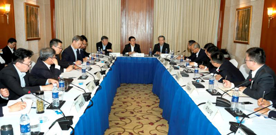 中国驻柬埔寨大使熊波,公安部副部长李伟,云南省副省长、公安厅厅长任军号参加座谈会。(图:满博)