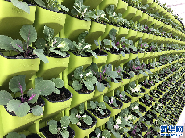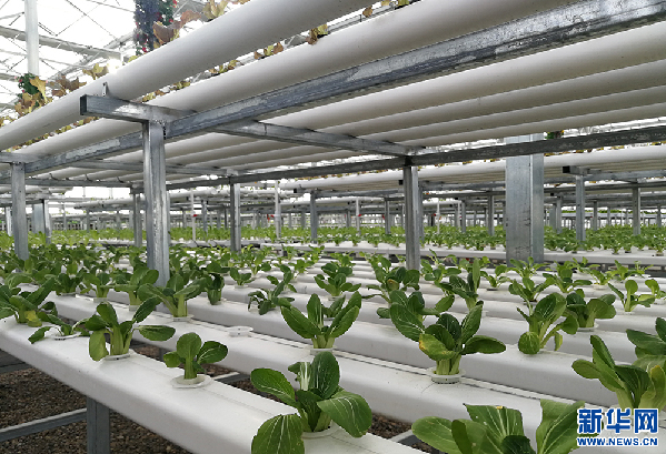 智能温室正在培育的蔬菜。新华网记者 张宸摄
