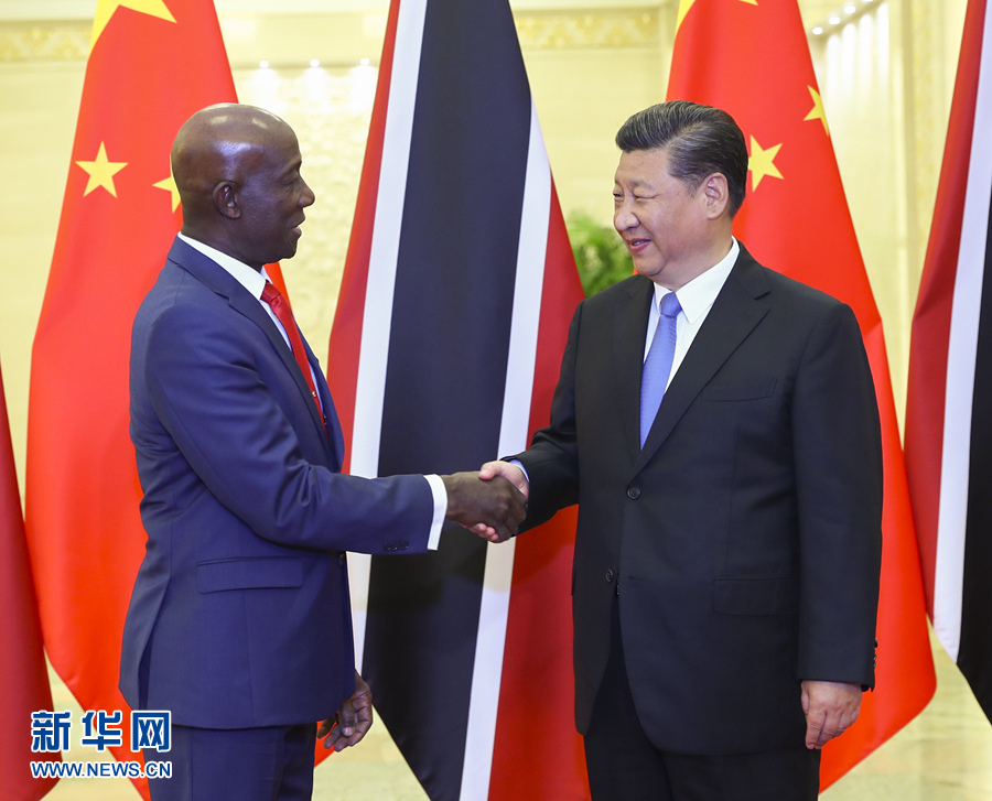 5月15日,国家主席习近平在北京人民大会堂会见特立尼达和多巴哥总理罗利。新华社记者 谢环驰 摄