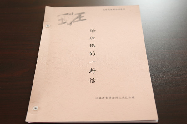 图为北京市沐林教育矫治所酒驾拘役人员写给“2010年英菲尼迪追尾菲亚特醉驾案”受害者珠珠的一封信。徐宗涵/摄