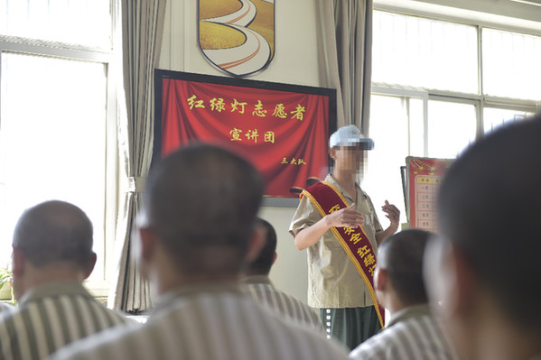 图为红绿灯志愿者为酒驾拘役人员进行宣讲。徐宗涵/摄