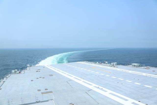 5月13日至18日,我国第二艘航母首次出海试验。新华社记者于晓泉 摄